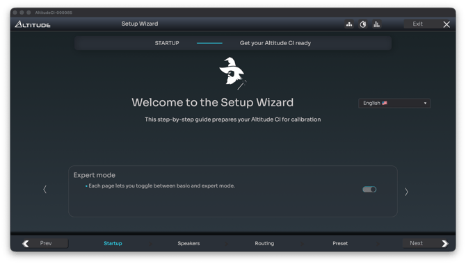 The Startup step is the first stage of the Setup Wizard on both Altitude and NOVA.