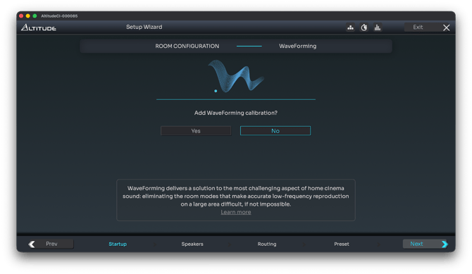 This choice determines whether additional WaveForming configuration and calibration steps will appear later.