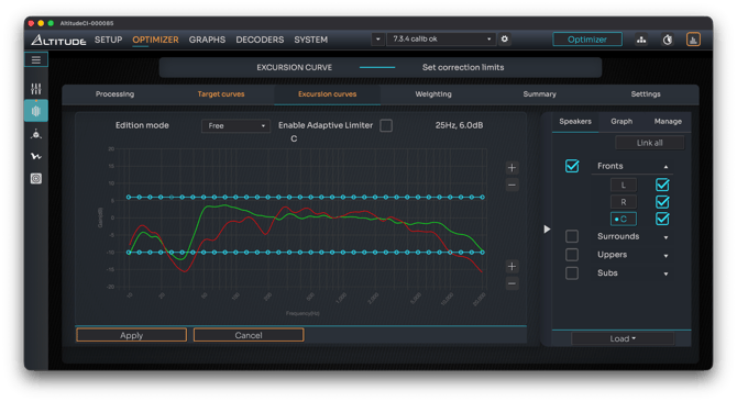 Both boost and attenuation limits can be adjusted in the Excursion Curves tool.