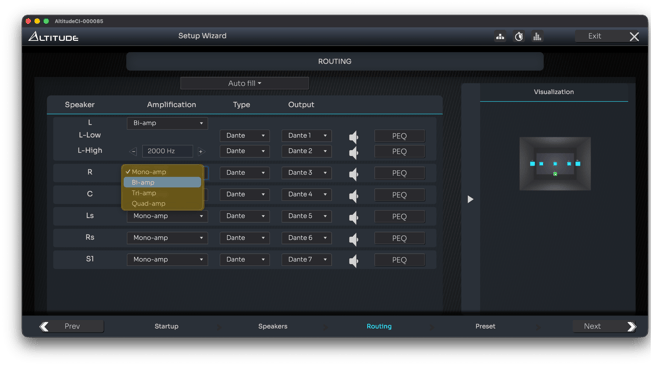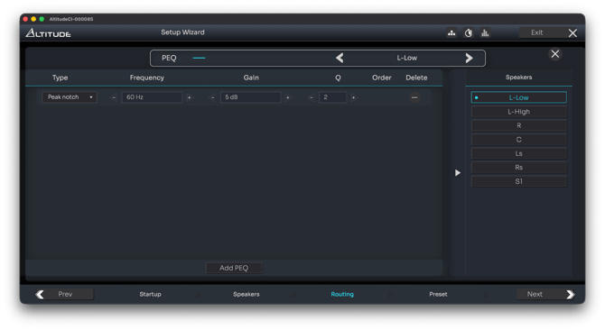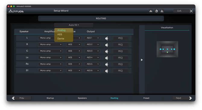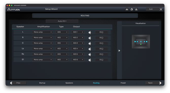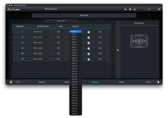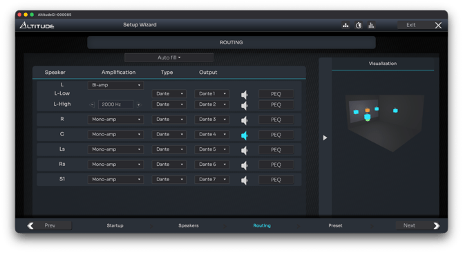 Routing on AltitudeCI is therefore much more flexible: any speaker or subwoofer can be assigned to any output, regardless of physical connector type.