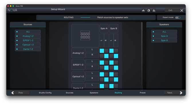 When NOVA is used as a monitor controller, routing is largely automatic.