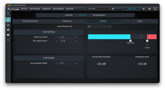 Learn how to define volume limits, adjust reference levels, and customize volume display for Trinnov Altitude and NOVA processors.